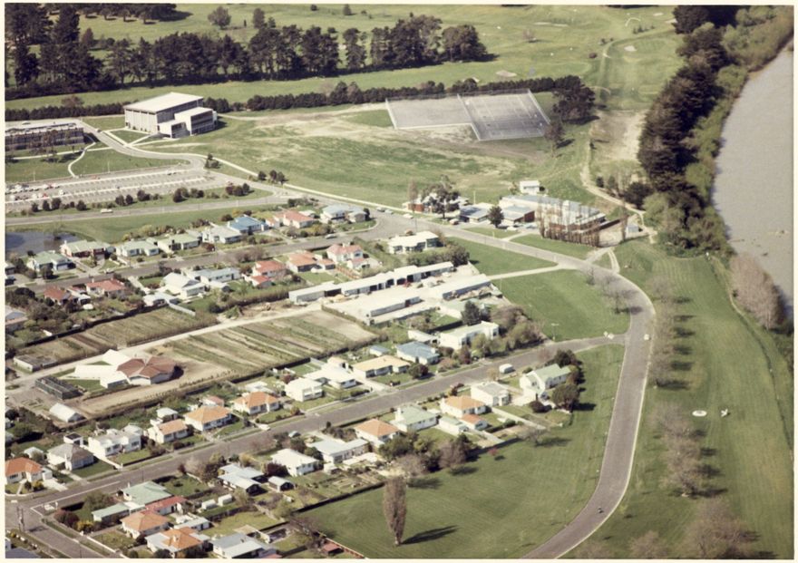 The Palmerston North Teachers' College was constructed in the 1960s. The Manawatu Golf Club is in the background.
