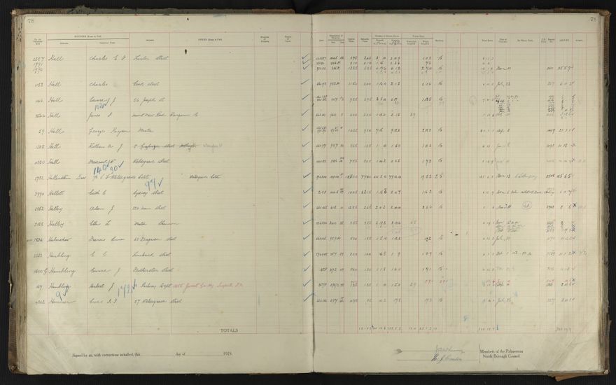 Palmerston North Borough Council rate book, listing rate payers for the years (1 April - 31 March) 1923 - 1924. Gives names, street, owner (if different to rate payer), legal description of property, capital and unimproved values and rates paid.