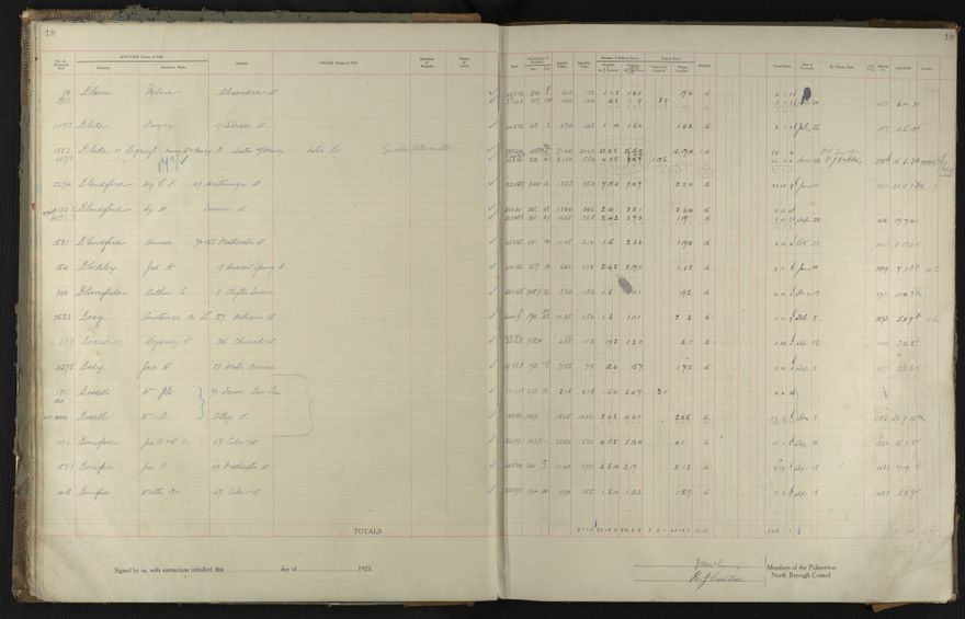- Palmerston North Borough Council rate book, listing rate payers for the years (1 April - 31 March) 1923 - 1924. Gives names, street, owner (if different to rate payer), legal description of property, capital and unimproved values and rates paid.