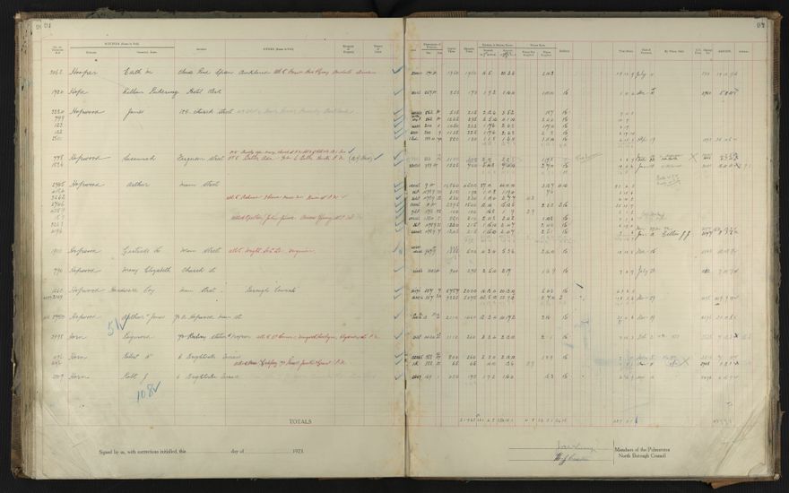 Palmerston North Borough Council rate book, listing rate payers for the years (1 April - 31 March) 1923 - 1924. Gives names, street, owner (if different to rate payer), legal description of property, capital and unimproved values and rates paid.