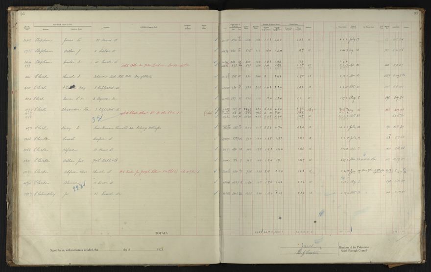 Palmerston North Borough Council rate book, listing rate payers for the years (1 April - 31 March) 1923 - 1924. Gives names, street, owner (if different to rate payer), legal description of property, capital and unimproved values and rates paid.