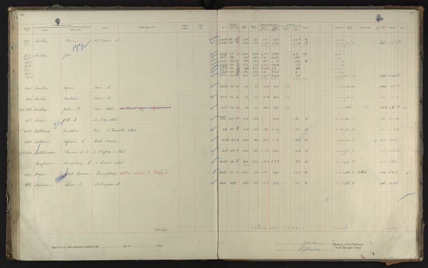 Palmerston North Borough Council rate book, listing rate payers for the years (1 April - 31 March) 1923 - 1924. Gives names, street, owner (if different to rate payer), legal description of property, capital and unimproved values and rates paid.
