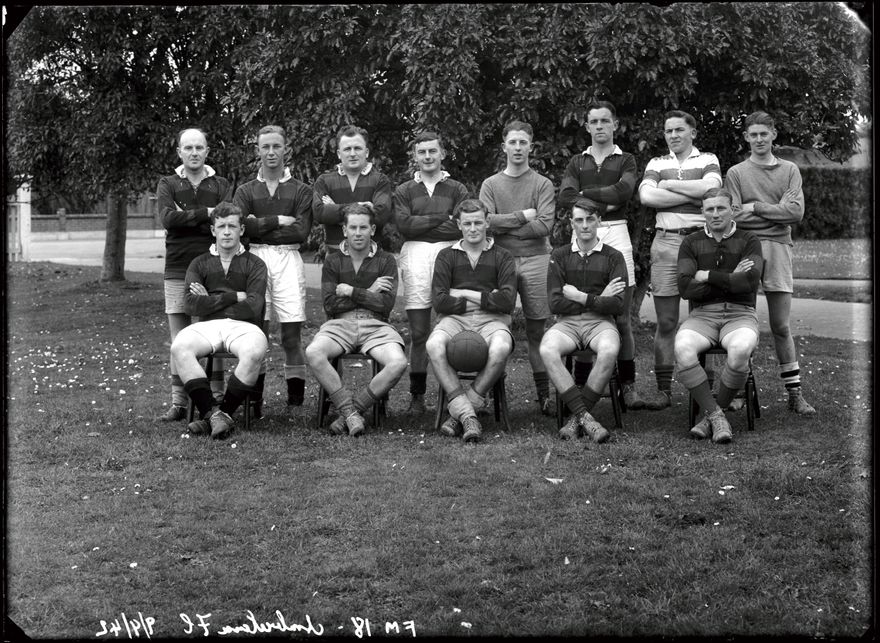 - This negative has been entitled the Ambulance Football club. It shows 13 young men in football jerseys. They are perhaps part of the NZASC 2nd Field Ambulance group as it was around the time that this photograph was taken that men were being trained at the A&P Showgrounds, Awapuni racecourse and Awatapu Golf Course.
