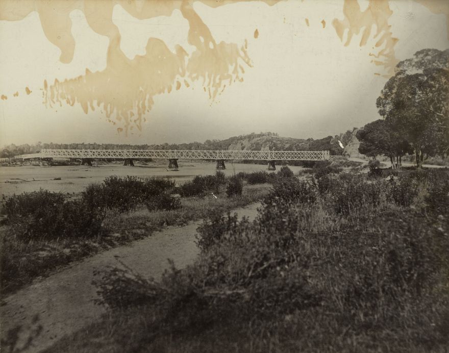 Looking along dirt road to the bridge, crossing the Rangitikei River at Bulls.