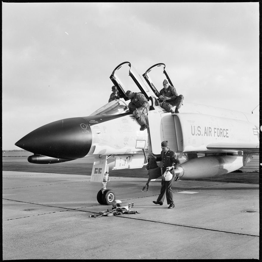 This image was taken (but not used) for a story that ran in The Manawatu Evening Standard on 26th January 1966 "This is the fastest plane in New Zealand - a F-4C Phantom fighter-bomber, photographed on arrival at Ohakea air base last night. The Phantom can carry twice the bomb load of a World War II Liberator and has a maximum range of 2000 miles without resorting to in-flight refueling."