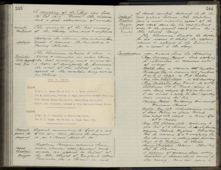 Manawatu Patriotic Society Minute Book (1916-1917)