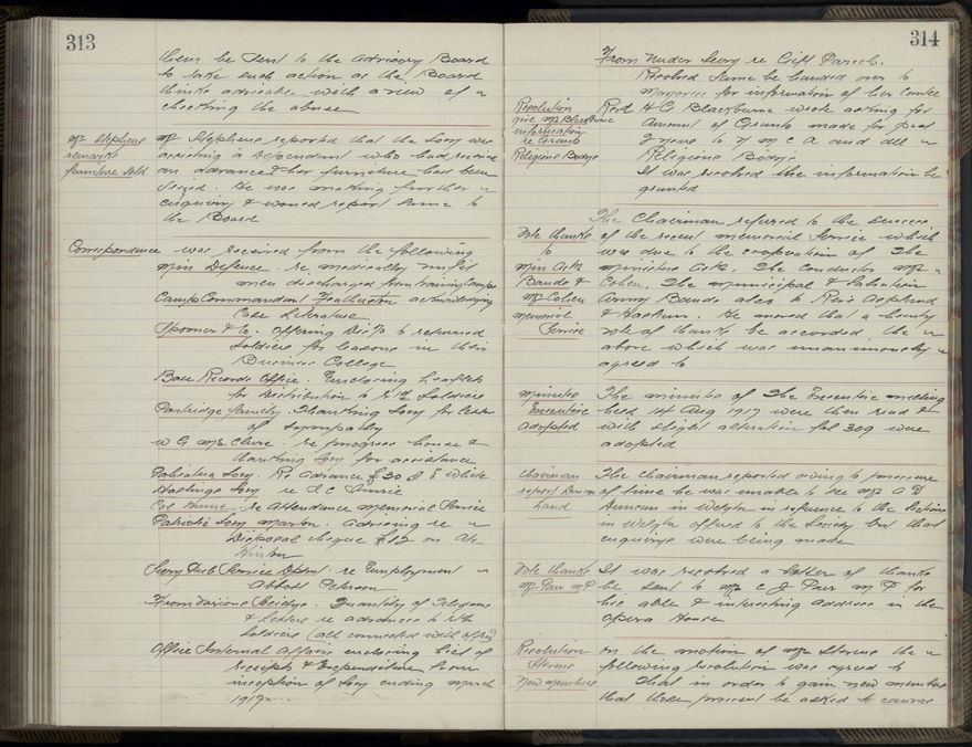 Minutes of annual general meetings and monthly committee meetings of the Manawatu Patriotic Society from 1916-1917. The Manawatu Patriotic Society was formed during World War One for fundraising and welfare purposes. The chairman of the Society's Committee was Mr J A Nash, Mayor of Palmerston North.