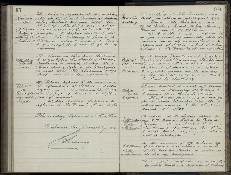 Minutes of annual general meetings and monthly committee meetings of the Manawatu Patriotic Society from 1916-1917. The Manawatu Patriotic Society was formed during World War One for fundraising and welfare purposes. The chairman of the Society's Committee was Mr J A Nash, Mayor of Palmerston North.