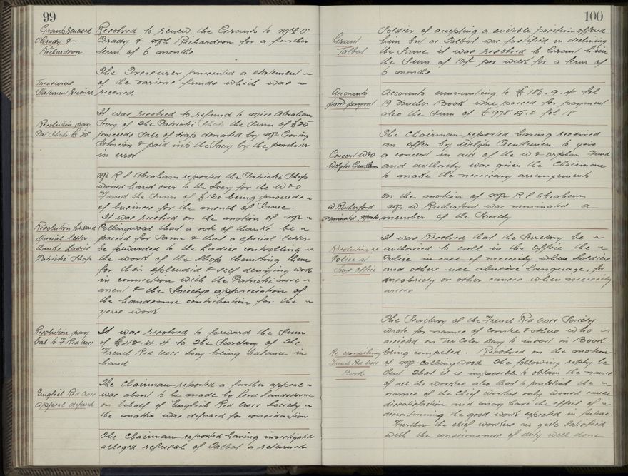 Minutes of annual general meetings and monthly committee meetings of the Manawatu Patriotic Society from 1916-1917. The Manawatu Patriotic Society was formed during World War One for fundraising and welfare purposes. The chairman of the Society's Committee was Mr J A Nash, Mayor of Palmerston North.