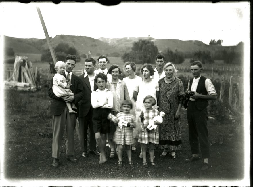 L-R: Reg Wildbore, Beverly Wildbore, Jack Sandbrook, Roy Williams, Ivan Lepper, Ruby Sandbrook, Norma Sandbrook, Evan Wildbore, Sylvia, Jean Sandbrook, Albert Whittaker, Jane Wildbore, Cecil Wildbore.