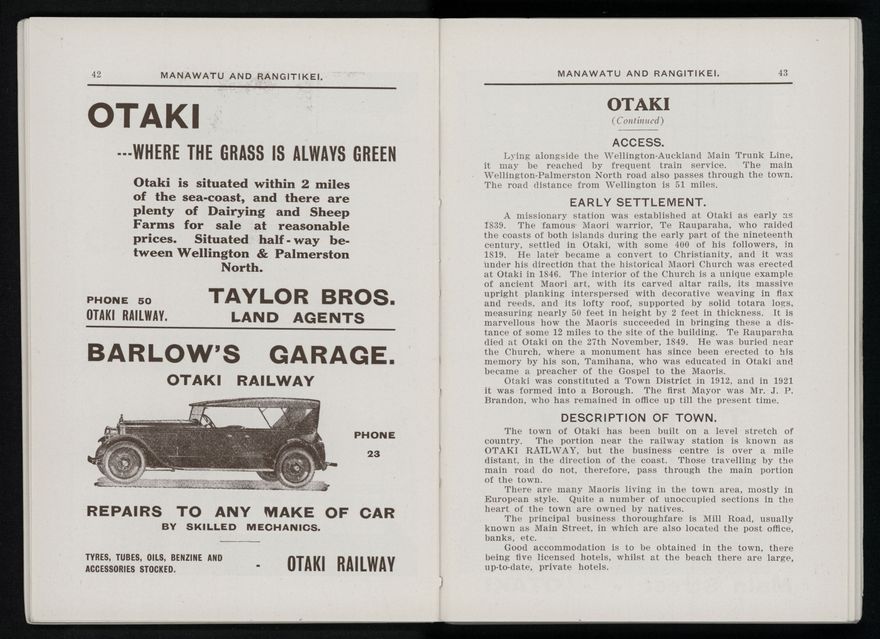 The front of this illustrated guide to the Manawatu and Rangitikei districts reads,