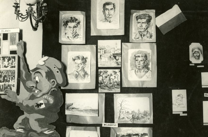 Exhibition of gifts to be sent to New Zealand, as displayed at Cupra Marittima, italy, during World War Two. The gifts were made by Polish soldiers to give to New Zealand as an expression of their heartfelt gratitude for New Zealand's treatment of the Polish children refugees and appreciation of the great friendship shown to the soldiers through the sending of correspondence and parcels, during World War Two.