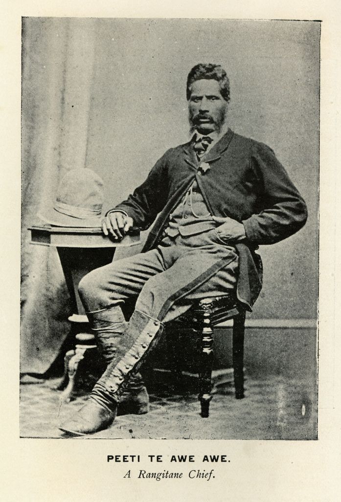 Te Peeti Te Awe Awe, rangatira o te iwi o Rangitāne, c.1820-1884. Peeti Te Awe Awe (c 1820 - 1884) was a chief of Rangitāne and was instrumental in the pakeha settlement of Manawatu.