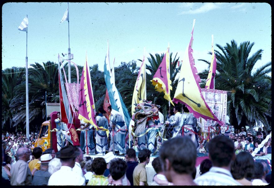The organisation behind this float is not shown, but appears to be from a Chinese community group. See also 2015S_2010-26_012386 for another view of the float.