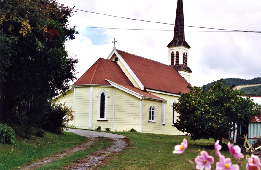 St Joseph's Church in Jerusalem on the banks of the Whanganui River. The church was designed by Thomas Turnbull and constructed in 1892. The first church was destroyed by fire in 1888.