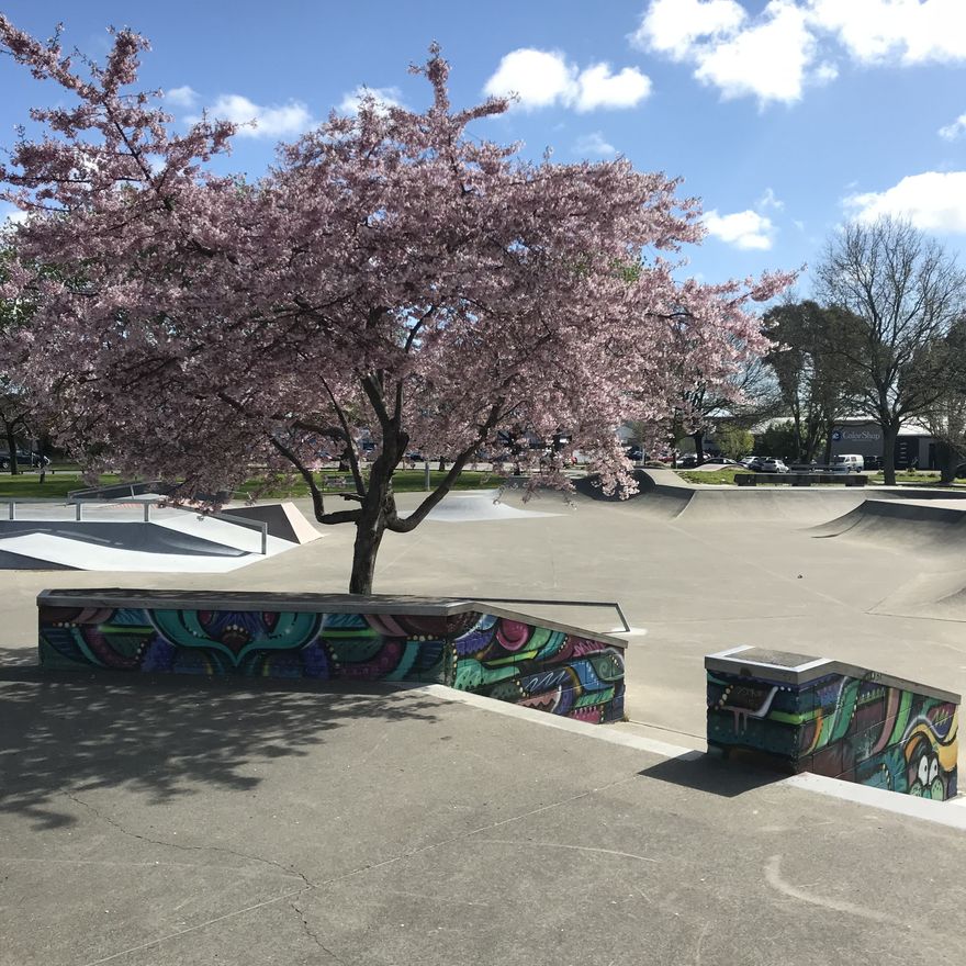 Palmerston North Skate Park in blossom