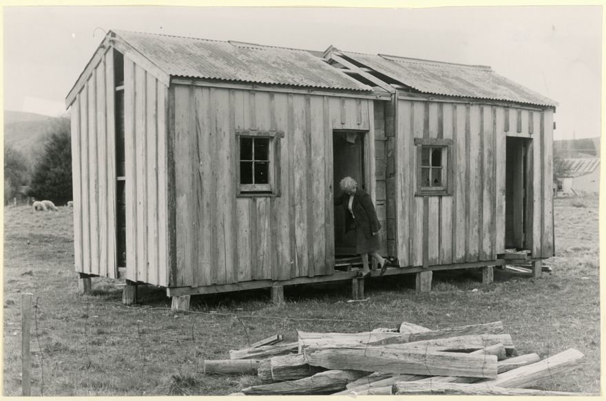 This two roomed settlers cottage was probably built c 1910. It has vertical planking and is built with of pit-sawn timber. The cottage consists of a sleeping room and an eating room. Cooking was done on an outside stove. It was restored by the Apiti Historical Society in the 1980s. It was lived in for many years by a man whose name was not recorded - it was given to the society after his death by Charlie McKenzie. It was brought into the village from Ridge Road with the help of the Pohangina County Council.