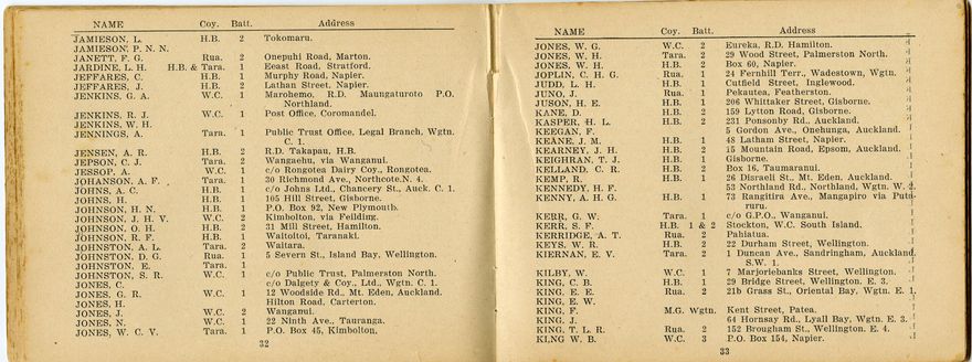 - A roll book containing names, addresses and regimental particulars of those who served in the Wellington Infantry Regiment during World War One.