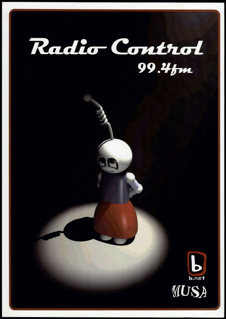 radio Control 99.4fm. b b.net. MUSA. Part of a collection of posters that were displayed at The Stomach, Lombard Street, venue for Creative Sounds Society Incorporated.