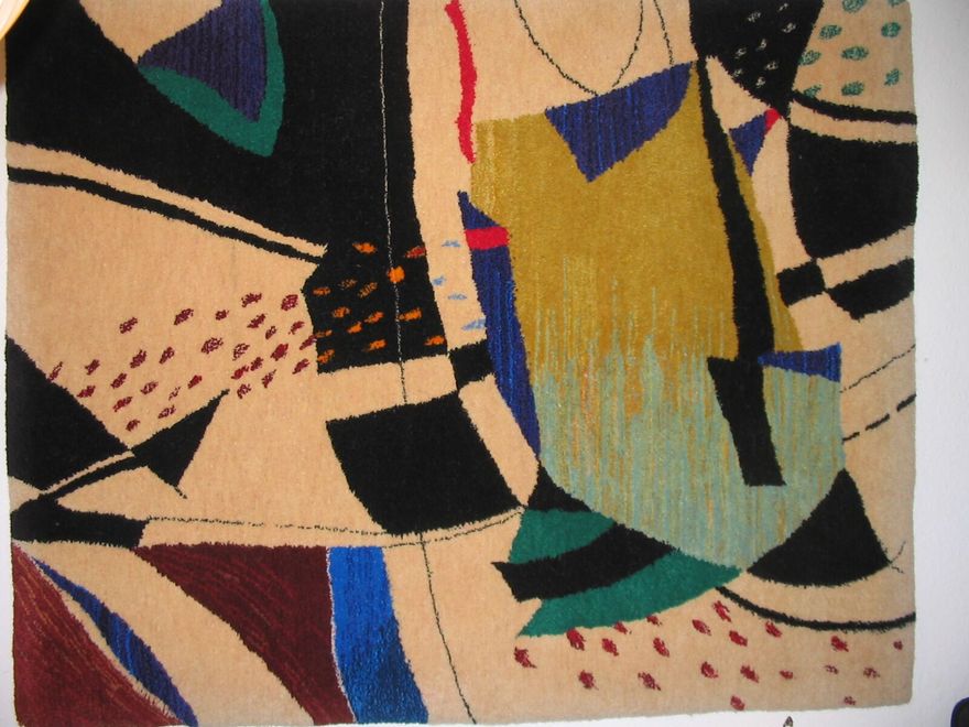 152cm wide x 119cm high, tufted rug, wool on polypropylene and hessian backing.