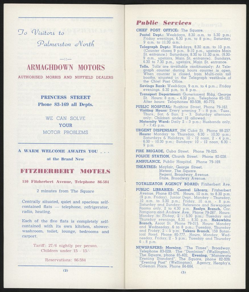 Visitors Guide Palmerston North and Feilding: October-December 1962