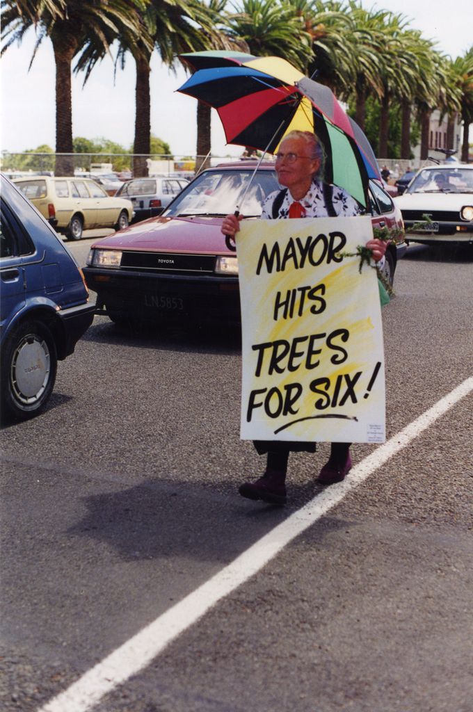 Avenue Action was formed in protest against the Palmerston North City Council removal of trees in Fitzherbert Avenue. This was to allow for four lanes of traffic as an engineering solution to cross-river transportation problems in 1997.