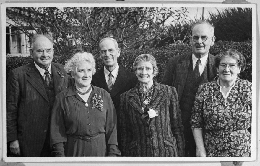 Children of Matilda and John Kennedy. From left: Fredrick Chafe (who fought in in the Boer War), Jessie (who became Mrs L. Gronn and later Mrs A. Ross), William, Barbara (who became Mrs Cowen of Apiti and later Mrs Anderson), Issac (who also fought in in the Boer War) and Elizabeth (who became Mrs W. Mills of Te Awamutu).
