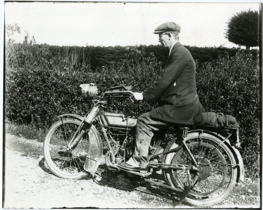 The motorcycle in this image has been identified as a 1911 Humber 3.5hp single.