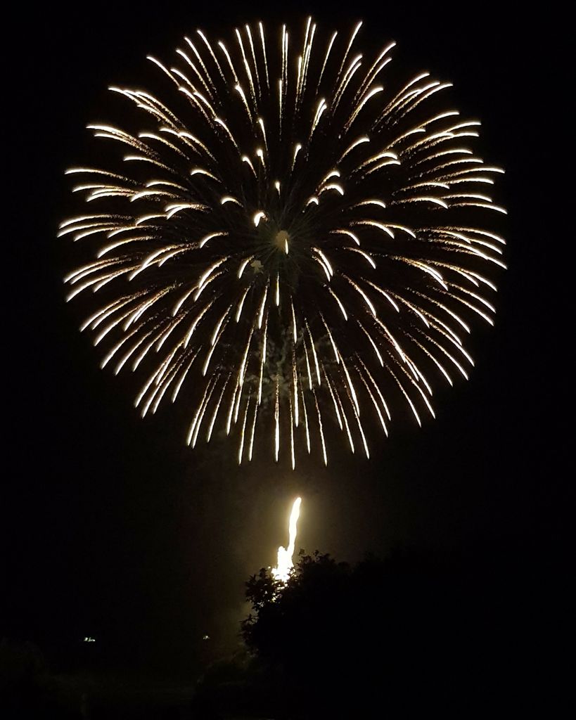 Photograph from the Manawatu cycle way of the Fireworks Over The River Display 2018. Fireworks were set off from the ANZAC Park area on the south bank of the Manawatu River. Display commenced at 9pm on Monday, 5 November 2018.