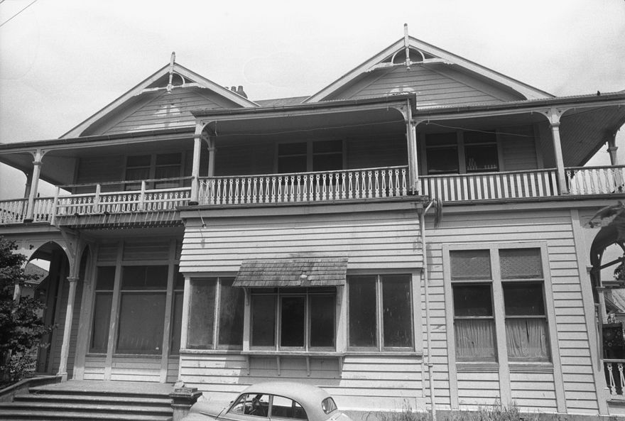 This 18-20 roomed house was built by William Coomb’s wife Alice upon returning to Palmerston North after her husband's death in Hastings in 1907. Known by the family as 'Birchanger', it was designed by C W Blackbourn as a replica of their Hawkes Bay, Tukituki home. Mrs Coombs lived in the house until her death in 1940 at the age of 82. In 2008 the house operated as a Rest Home. It was then known as 'Hillcrest', and now Woodlands [2020], it is listed in category 4 of the New Zealand Historic Places Trust register because of its architectural significance.