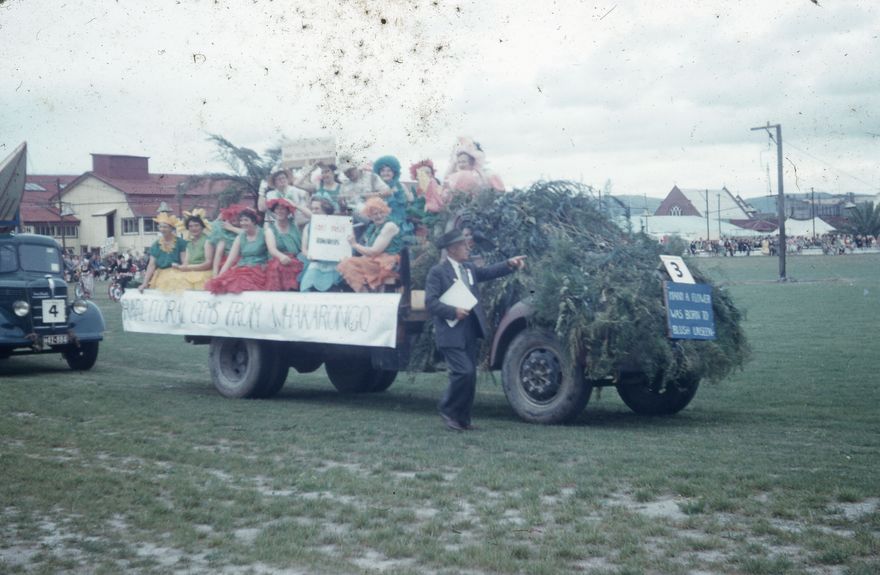 The Floral Festival was a weeklong series of events organised by the Palmerston North Public Relations Organisation between the 17th and 22nd of February 1958. The events were well attended, and many businesses got into the spirit of the occasion with floral themed window displays, quizzes, fashion shows and film festival showings. The event was topped off by the parade, attended by hundreds of people along the route.