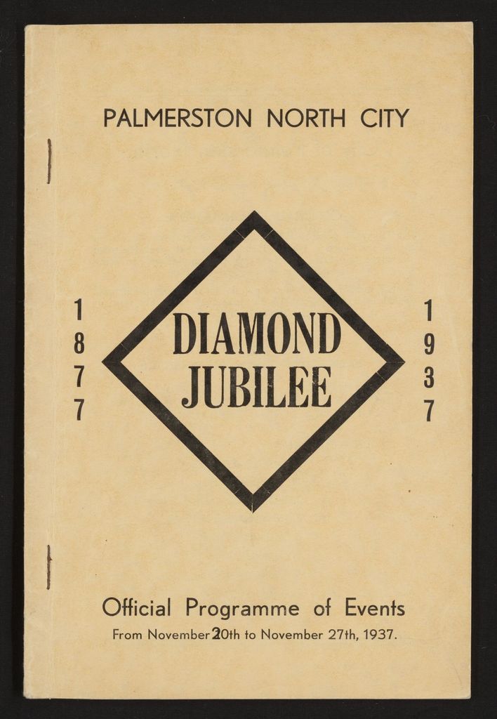 This programme was printed by the Palmerston North City Council. It gives the schedule and details for the week-long celebrations surrounding the city's Diamond Jubilee in 1937.