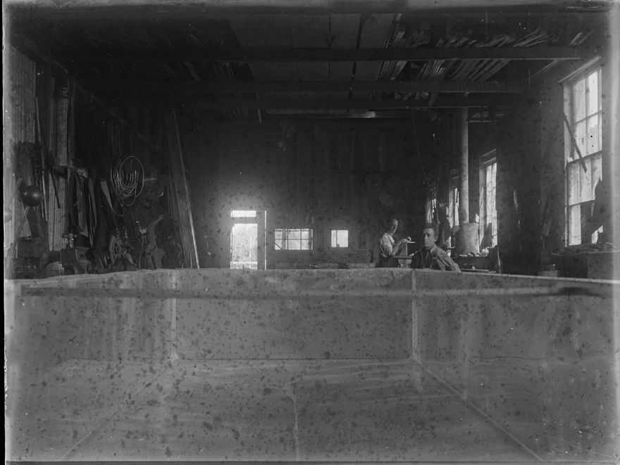 This image is believed to have been taken by Palmerston North Engineer Edwin Daniel Berry and may depict the interior of Berry Engineering's first premises on Main Street.