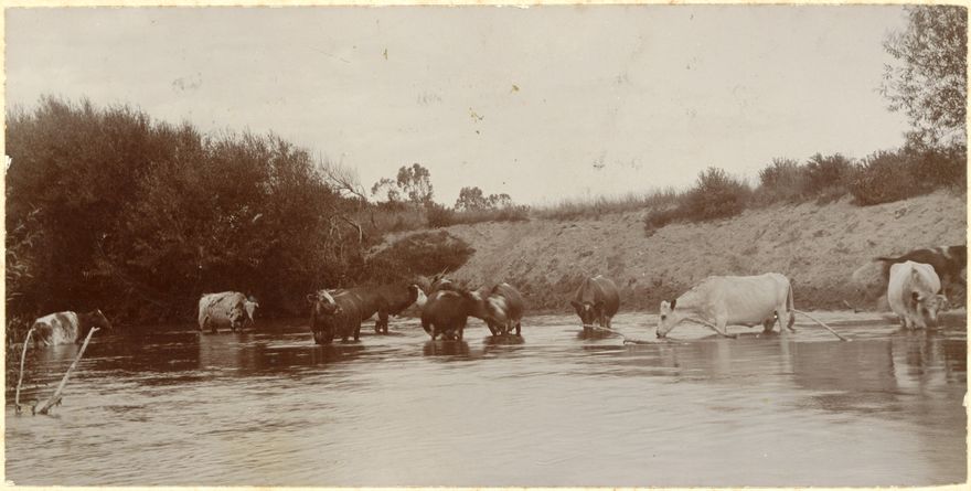 Cows drinking in the Oroua river at Rangiotu, near Palmerston North.