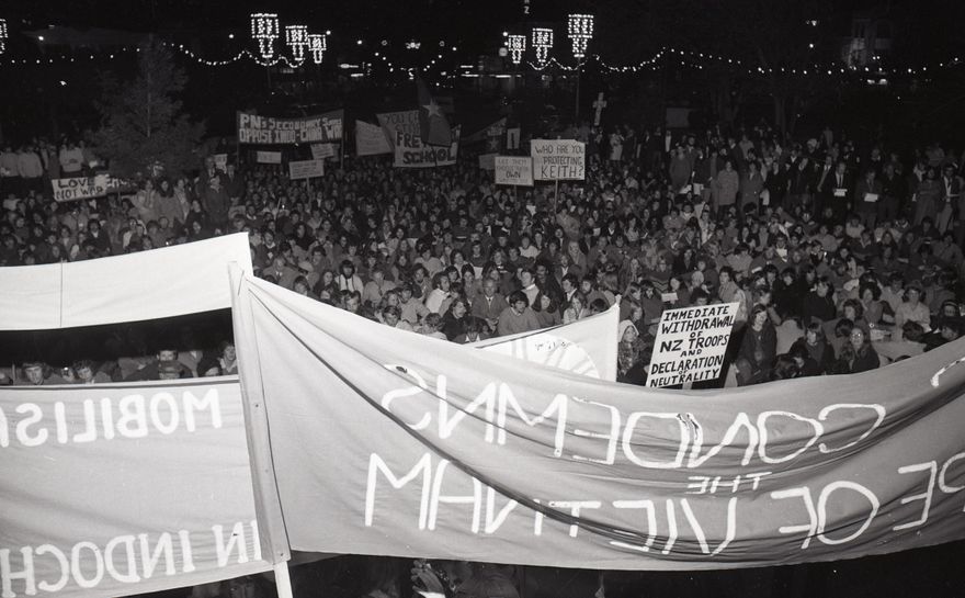 “After the Demonstration Mr Millar said ‘The silent majority is starting to speak. Sir Keith Holyoake can no longer pretend that the majority of New Zealander’s are in favour of the war. These people hear tonight are telling him one thing; Stop the war and get all New Zealand troops out.’”