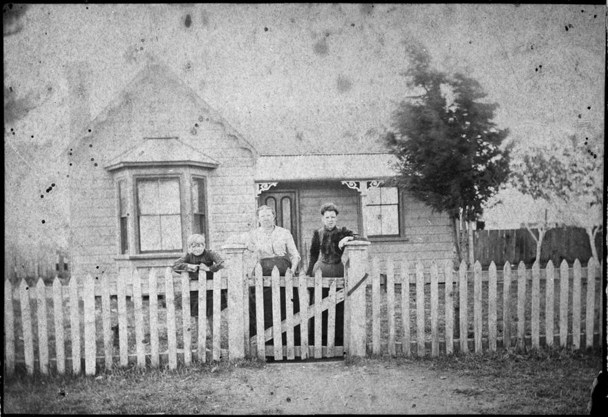 William Smith was a brick maker. Mrs W Smith is in the centre of the photograph. The residence stood on the eastern side of what is now Victoria Avenue, near the Church Street corner.