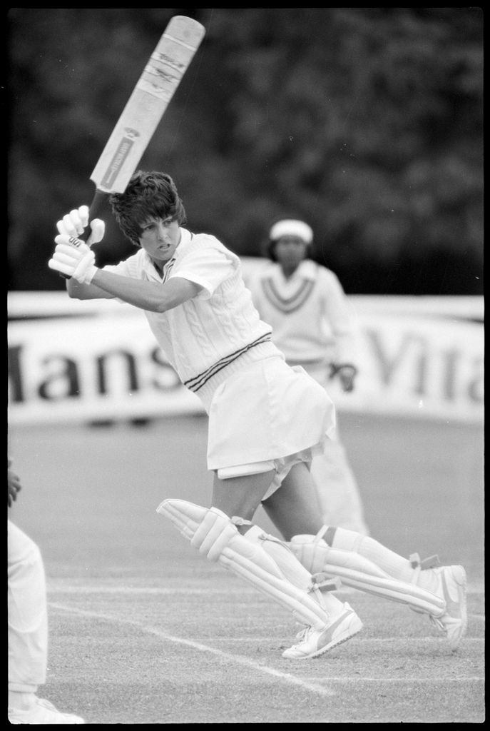 Caption: “New Zealand opener Nikki Turner turns the ball to the leg side for runs during her innings of 42 yesterday against India. Both she and Leslie Murdoch* batted intelligently to put their side within easy sight of victory.”