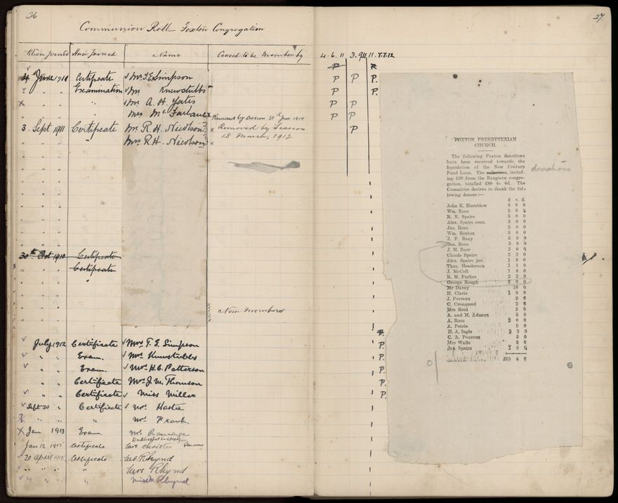 This baptismal register was for the Foxton Presbyterian Church. The register also includes Communion Rolls of Foxton 1907-15, Oroua Bridge 1909-15, Glen Oroua 1909-15, Tiakitahuna 1909-13, and Session Minutes 1909-1928.