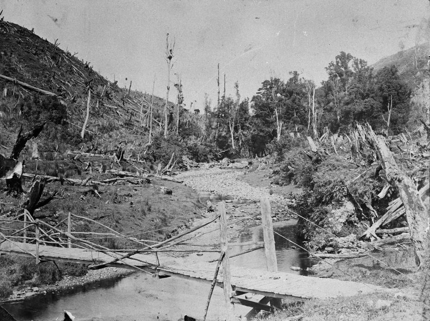 The swing bridge is probably over the Kahuterawa Stream. Hill Top was the Dittmer Farm on Scotts Road, Kahuterawa.