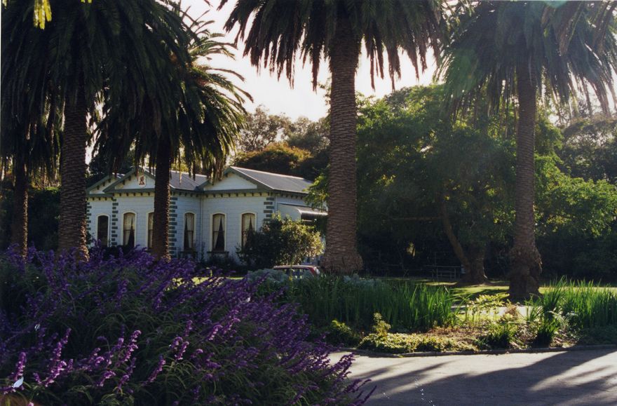 A view of Cafe Esplanade, from the roadway near the duck pond and Manawaroa Street entrance to Victoria Esplanade.
