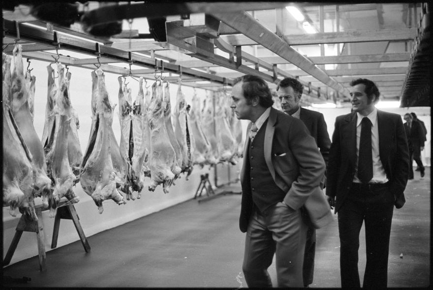 This image was taken by the Evening Standard on the 25th of May 1978 but was not published. It depicts Social Credit leader (and candidate for Rangitikei) Bruce Beetham visiting the Longburn Freezing Works on the campaign trail before the 1978 election.
