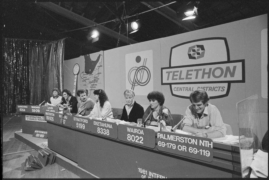 Telethon 1981 was for the International Year of Disabled Persons. Telethon was a 24-hour live television spectacular designed to raise money for charitable causes. It originated in the United States, but New Zealand put a typically Kiwi spin on the event. Local performers, amateur and professional were joined by international stars, who entertained New Zealand to raise money for charity. Groups of people from schools, clubs, and pubs, contributed cash and cheques, often in an oversized format, to add to the pledged totals on the day of the event.