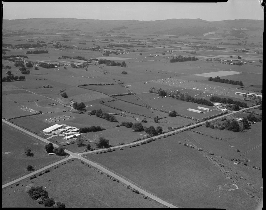 This aerial is believed to be set in Palmerston North. Can you identify the location? Please use the comments tab to let us know so we can update the information attached to this record.