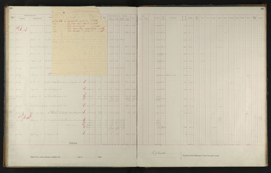 Palmerston North Borough Council rate book, listing rate payers for the years (1 April - 31 March) 1925 - 1926. Gives names, street, owner (if different to rate payer), legal description of property, capital and unimproved values and rates paid.