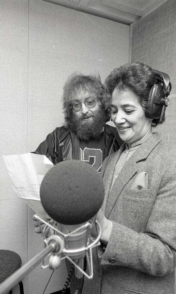 This image was taken for a story that ran in The Manawatu Evening Standard on 24th July 1985 "Palmerston North's Māori Community Action radio programme this week celebrates a year on air. And improving community response to the show coincides with a revival of taha Māori by the local Rangitāne people, says programme producer Tangihoro Fitzgerald. "This part of the country has always been stagnant as far as Māori things are concerned. People just didn't seem to be motivated. But now that's all changed because the local tribe, Rangitāne, is really starting to take its place in the community as being the tangata whenua. Without a tangata whenua you can't really get Māori things off the ground." The urban situation and mobility of the Rangitāne people meant they had become dispersed over the past 80 years. "This is an unusual tribe. There was no handing down of things Māori from the old people to the younger generation. But the Rangitāne people are now starting to come to grips with their taha Māori." Pictured: Mrs Tangihoro Fitzgerald with 2XS programme production manager John Haynes [The full article can be read on the newspaper microfilm held at the City Library.]