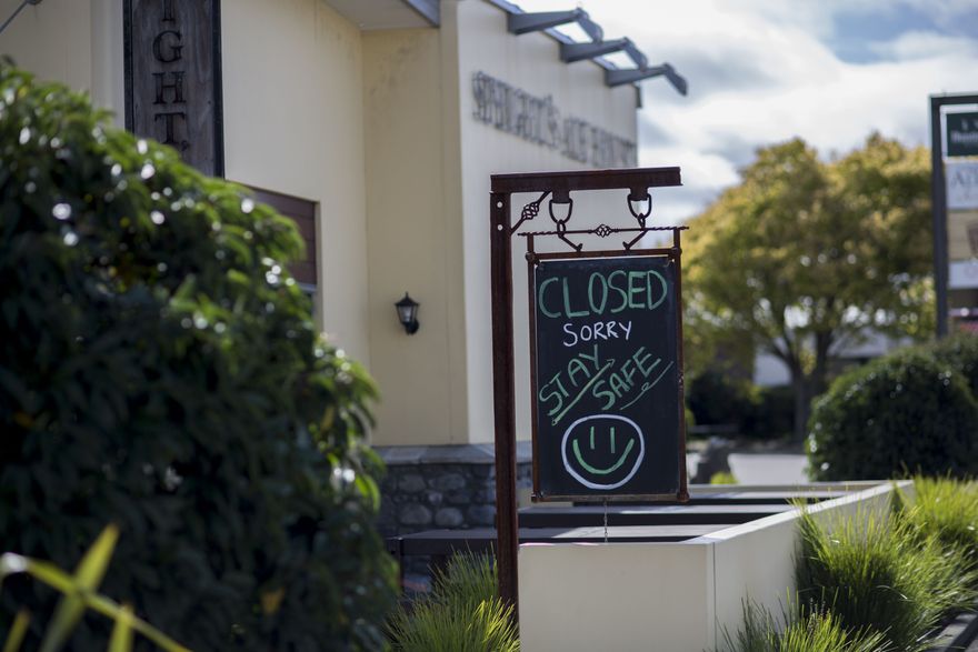 A sign at the Speights Ale House notifying customers that they are closed due to the COVID-19 pandemic.