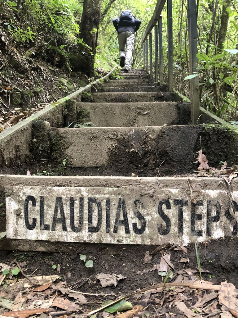 Stairs on the Sledge Track. The track is accessed from the car park at the end of Kahuterawa Road (GRAVEL ROAD), which runs off Old West Road in Palmerston North.