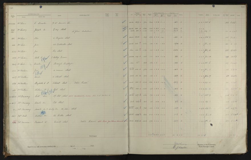- Palmerston North Borough Council rate book, listing rate payers for the years (1 April - 31 March) 1923 - 1924. Gives names, street, owner (if different to rate payer), legal description of property, capital and unimproved values and rates paid.