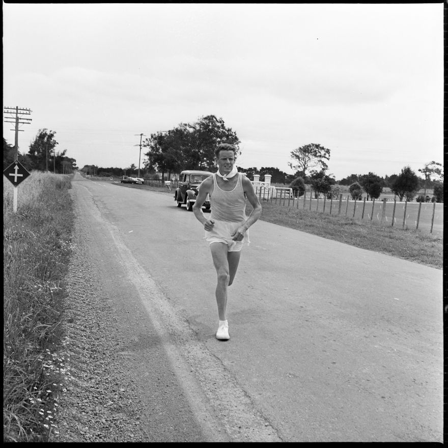 This image was taken (but not used) for a story that ran in The Manawatu Evening Standard on 29th January 1966 "B. Paterson (Palmerston North) wins the West Coast (North Island) marathon."