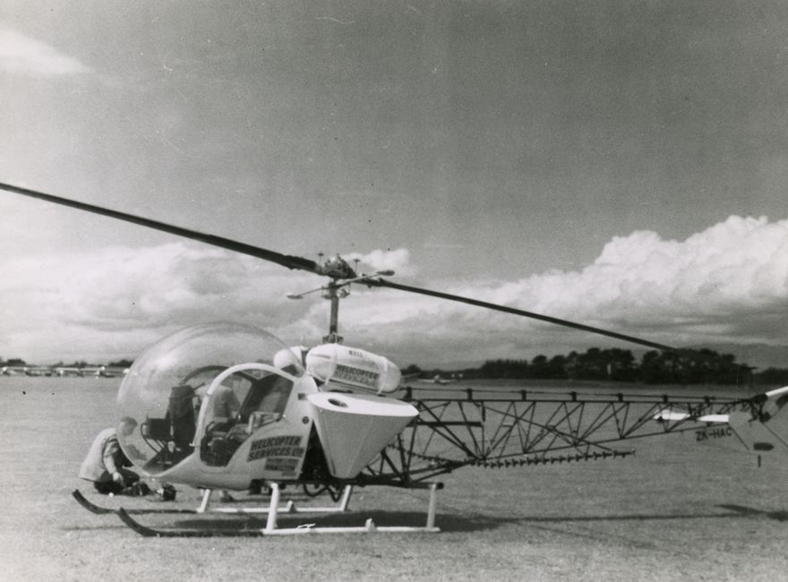 A Bell ZK HAC helicopter, belonging to ‘Helicopter Services Ltd’ of Hamilton equipped with a tank and spray boom, at the first International Agricultural Aviation Show held at Palmerston North. It attracted thousands of spectators and featured flying displays and static exhibits.